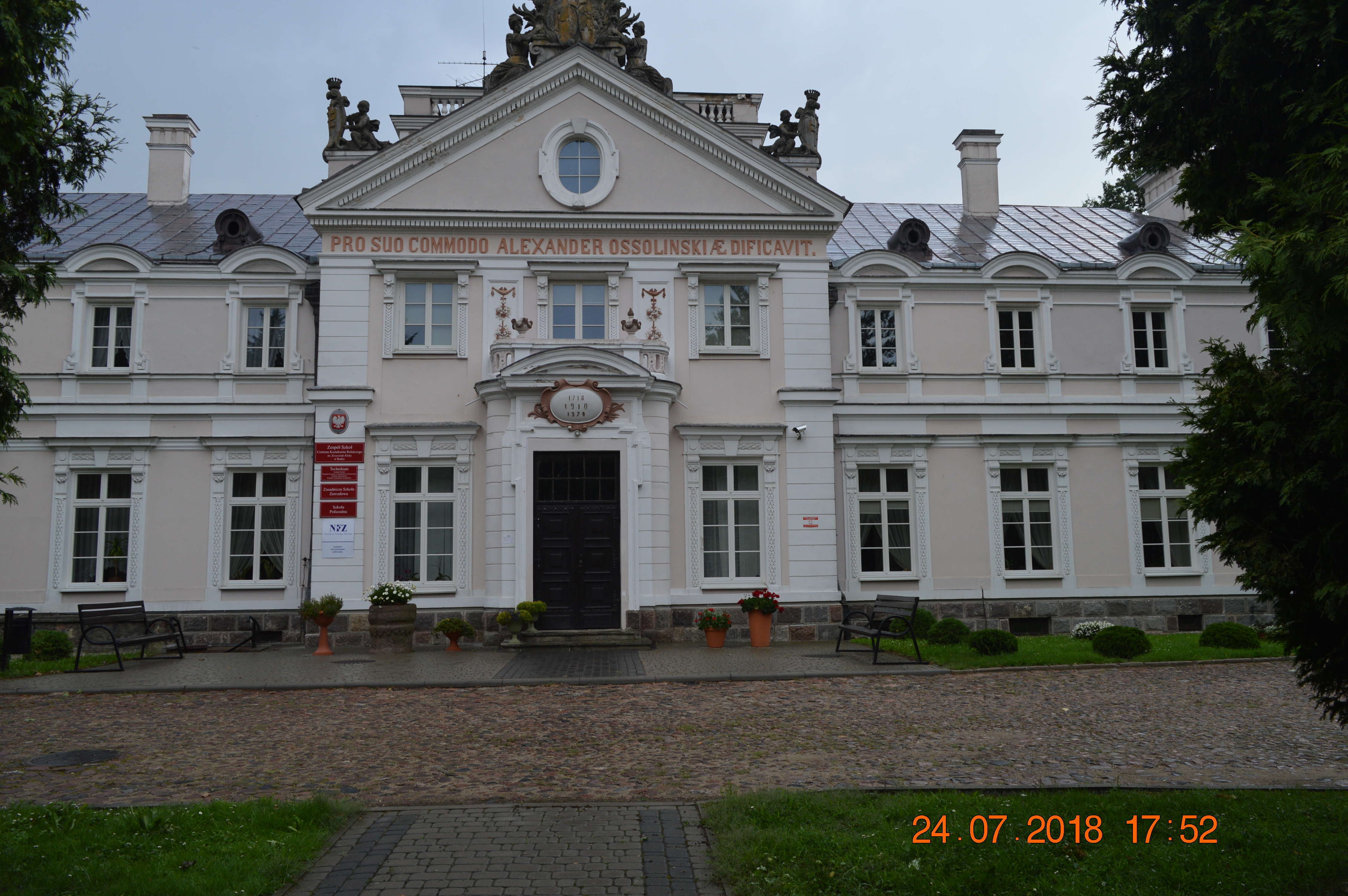 W 1718 r. Franciszek Maksymilian Ossoliński wybudował w Rudce pierwszy murowany dwór, który był budowlą parterową, prostokątną z dwoma skrzydłami.Kolejnym właścicielem został syn Franciszka – Józef Kanty, który w 1759 r. sprzedał Rudkę swojemu bratu stryjecznemu Aleksandrowi. W 1763 r. pałac został gruntownie przebudowany. Kolejnymi właścicielami byli: Józef Kajetan Ossoliński, jego syn Wiktor, a po jego śmierci w 1860 r. – córka Wanda Potocka. W czasie jej rządów pałac został ponownie gruntownie przebudowany.W 1920 r. pałac zdewastowali i okradli z cennych zabytków bolszewicy. W 1963 r. przeprowadzono remont i rekonstrukcję pałacu wg stanu sprzed 1937 r. Obecnie mieści się w nim Zespół Szkół Rolniczych im. Ks. Krzysztofa Kluka. Województwo podlaskie.