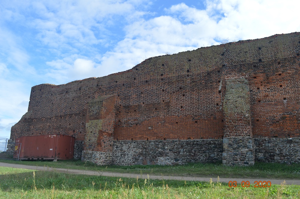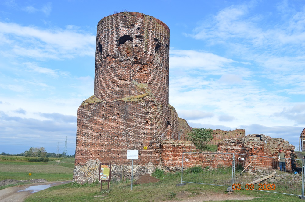 Ruiny zamku królewskiego położone są na lewym brzegu, na sztucznym wzniesieniu w zakolu rzeki Warty. Zamek został wzniesiony przez Kazimierza Wielkiego ok. 1352 r. na planie prostokąta z okazałą cylindryczną wieżą, Wysuniętą przed mury obwodowe.