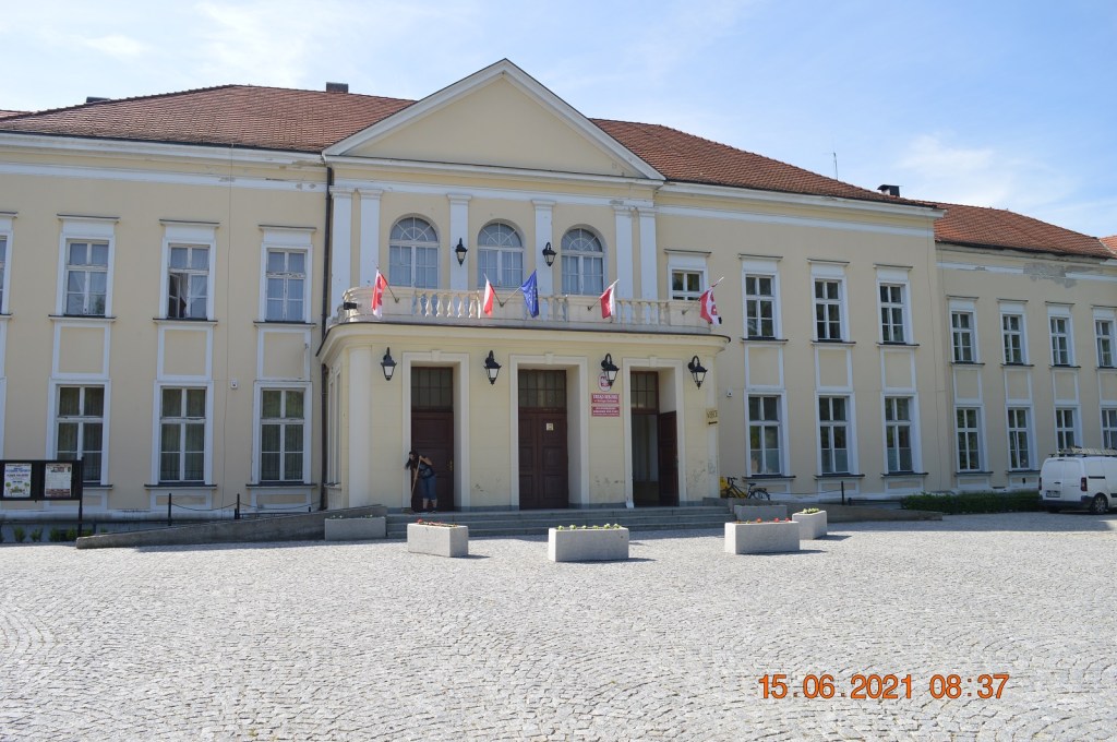 Pałac położony jest w centrum miasta. Około 1785 r. Karl Georg Hoym przebudował barokowy pałac i nadał mu styl klasycystyczny, który zachował się do dnia dzisiejszego.W pobliżu pałacu usytuowany jest browar oraz folwark. Pałac otoczony był parkiem w stylu angielskim. Znajdował się tam również basen, leśniczówka i herbaciarnia.W parku znajdował się również młyn zbożowy, kilka stawów oraz Mauzoleum Hoynów. W 1945 r. pałac spłonął.W latach 2014-2020 przeprowadzono kompleksową rewitalizację. Obecnie w pałacu mieści się Dolnośląski Ośrodek Kultury, Urząd Miasta i Gminy. Województwo dolnośląskie.