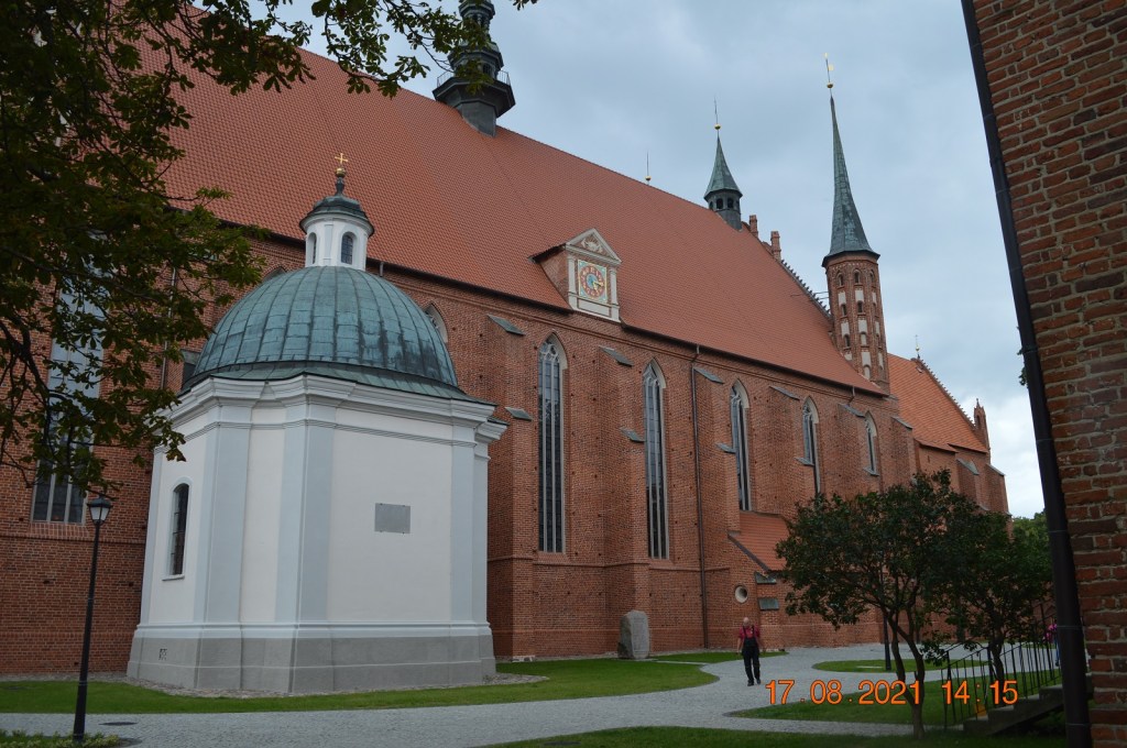 Zespół katedralny złożony z kościoła i zabudowań obronnych, położony jest na wysokim brzegu Zalewu Wiślanego.Pierwsza wzmianka o Fromborku pochodzi z 1278 r. w związku z ustanowieniem tu kapituły warmińskiej. Świątynia w styli gotyckim, została zbudowana w latach 1328 -1388Otoczona czworobokiem murów obronnych z wieżami, basztami i bramami. Od 1466 r do 1772 r. Frombork należał do Polski.W latach 1510 – 1543 mieszkał tu i pracował Mikołaj Kopernik, którego szczątki pochowane są w podziemiach katedry. Pomimo wielu zniszczeń i grabieży dokonanej przez Szwedów i podczas ostatniej wojny, zachowało się bogate wyposażenie wnętrz katedry.Zabudowania obronne stanowię mury z wieżami i basztami, wśród których wyróżniają się wieża Kopernika, gdzie powstały największe dzieła astronoma oraz udostępniona dla turystów wieża Radziejowskiego – dzwonnica, w podziemiach której urządzone jest planetarium. Województwo warmińsko-mazurskie.